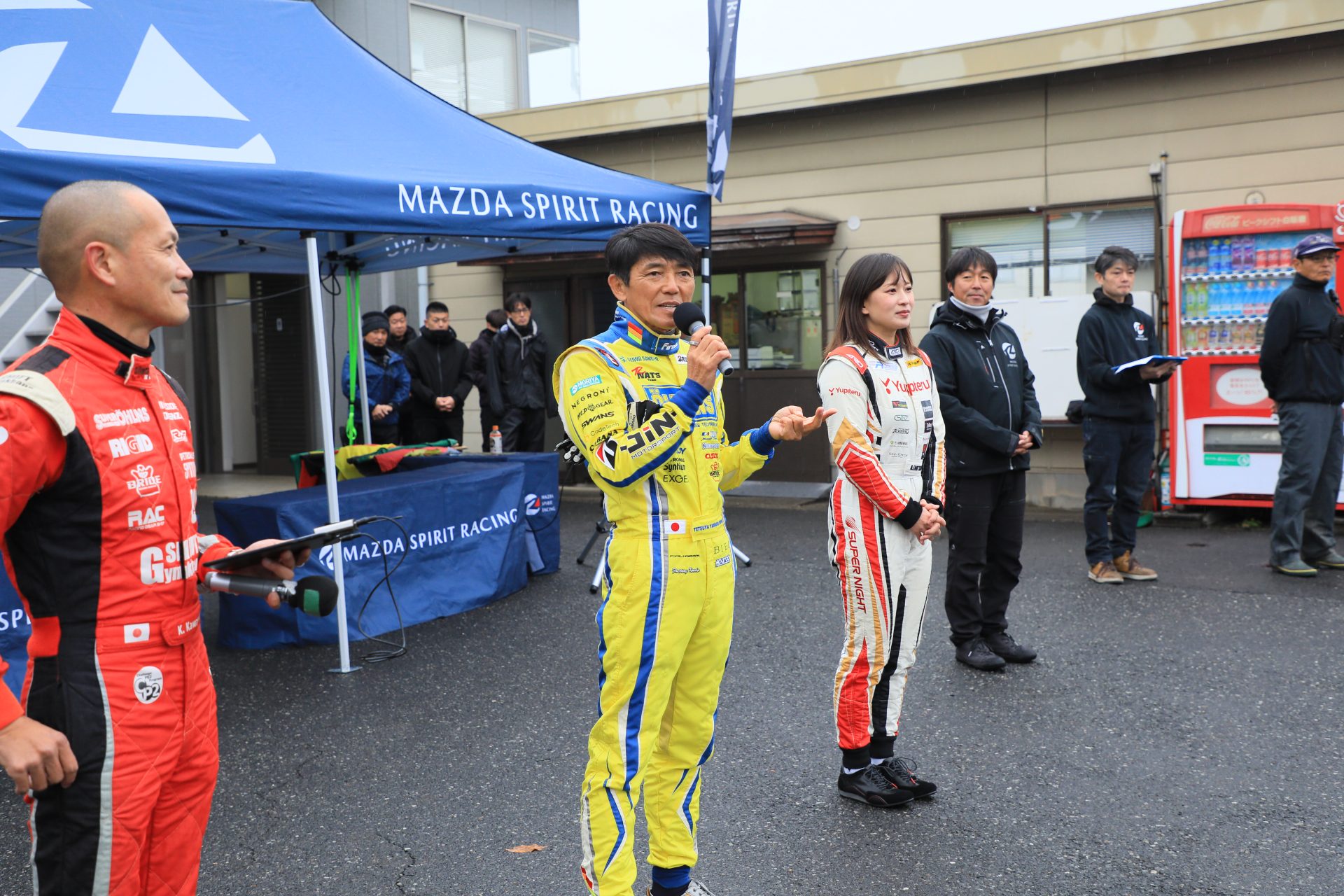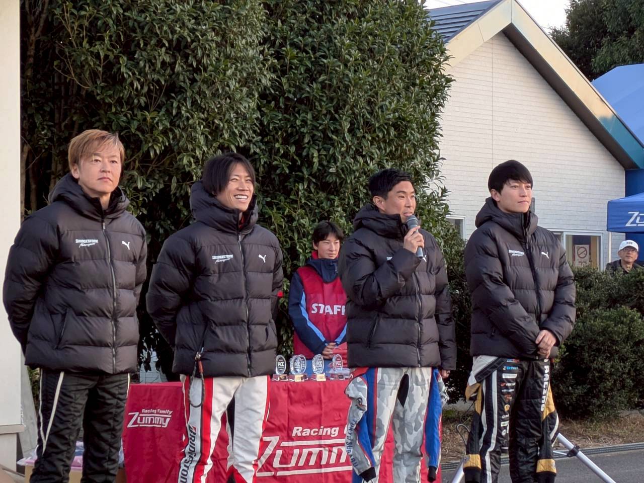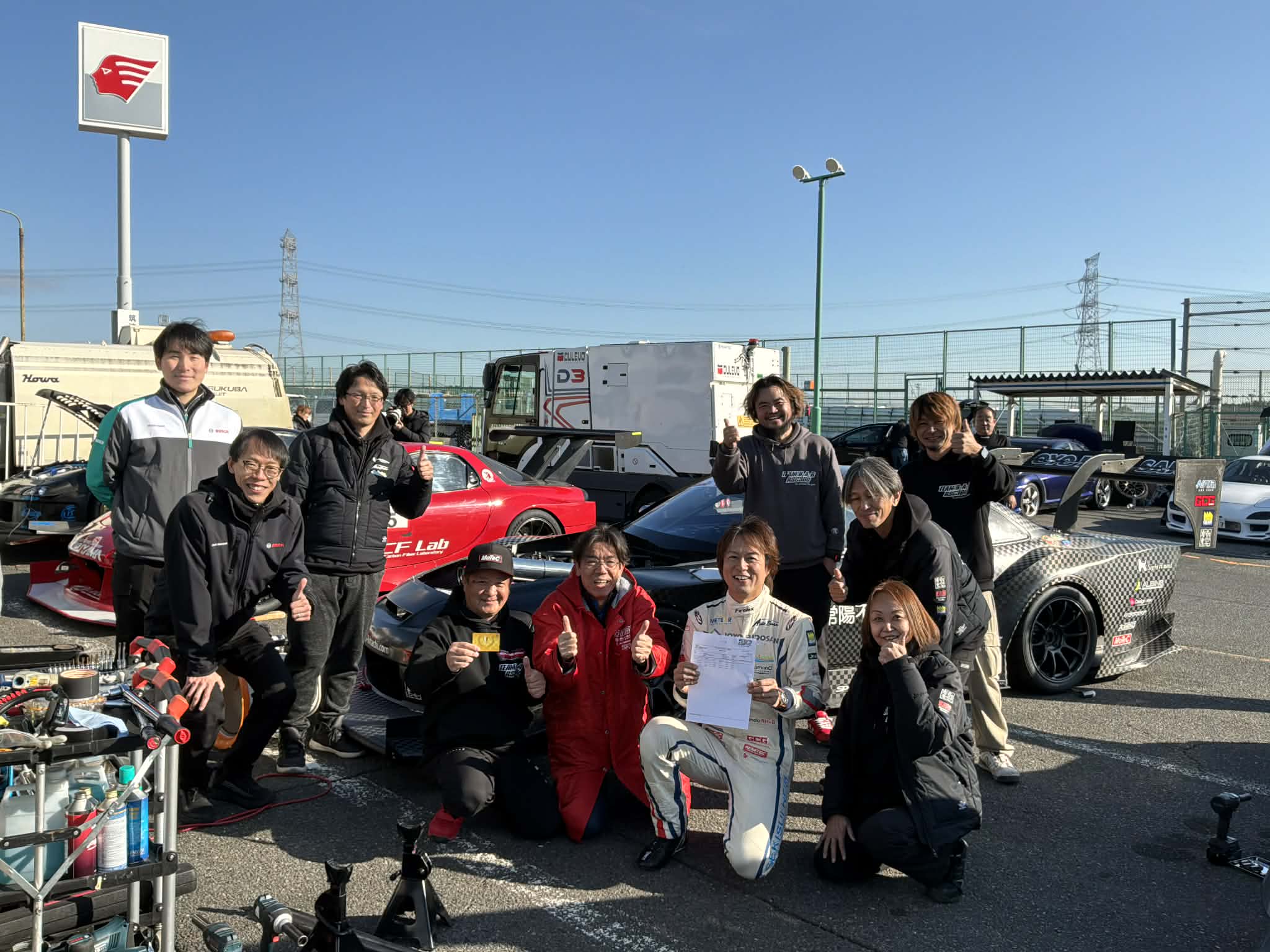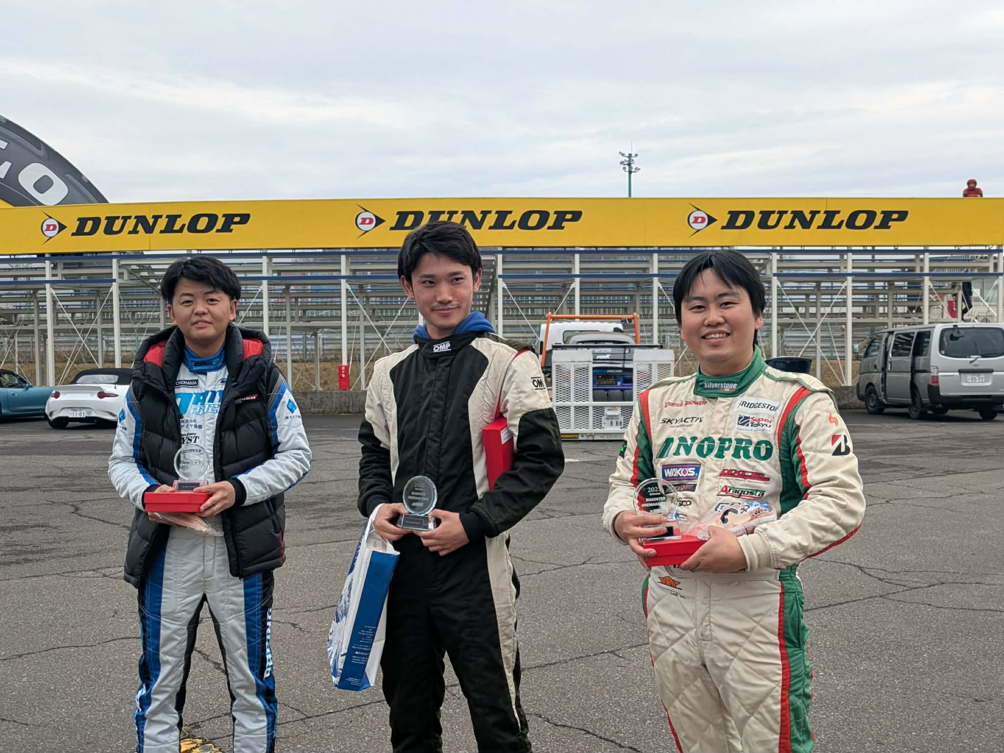 ※エンジョイクラスの待機場所は車検場裏とウォームアップ場ですが、満車の場合にはメインスタンド裏に駐車をお願いします。